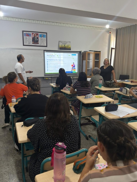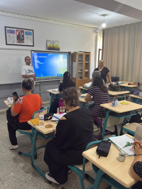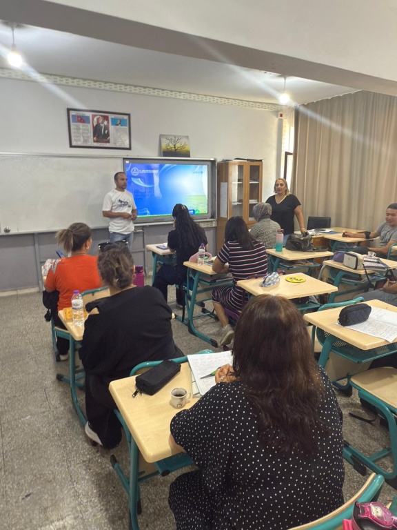 Okulumuz öğretmenlerinden Nurettin GÖK ve Ayla DEĞİRMENCİ öğretmenlerimize Çevre ve Afer Risk Eğitimi bilgilendirme toplantısı yaptılar.