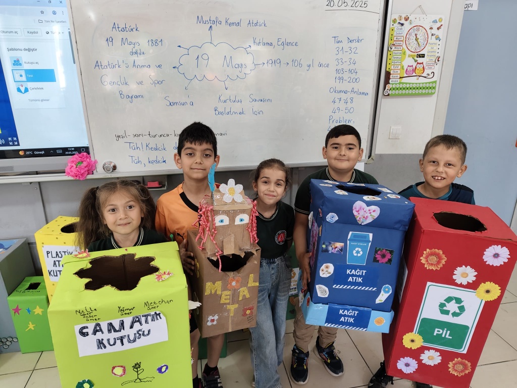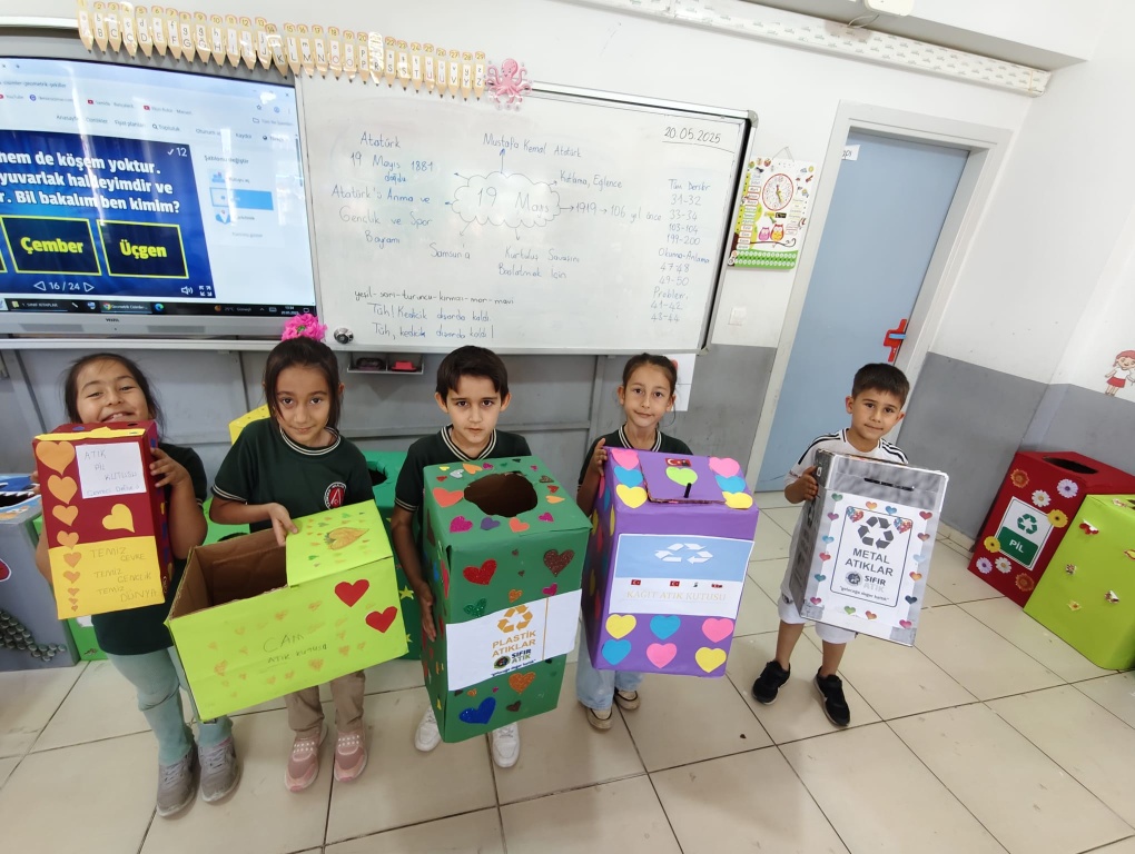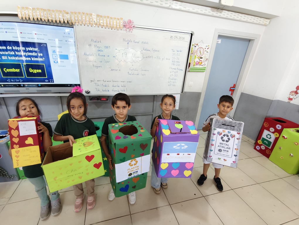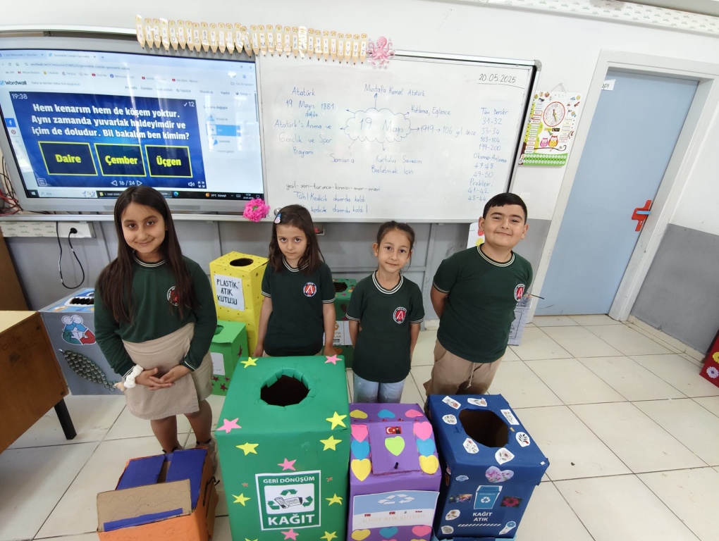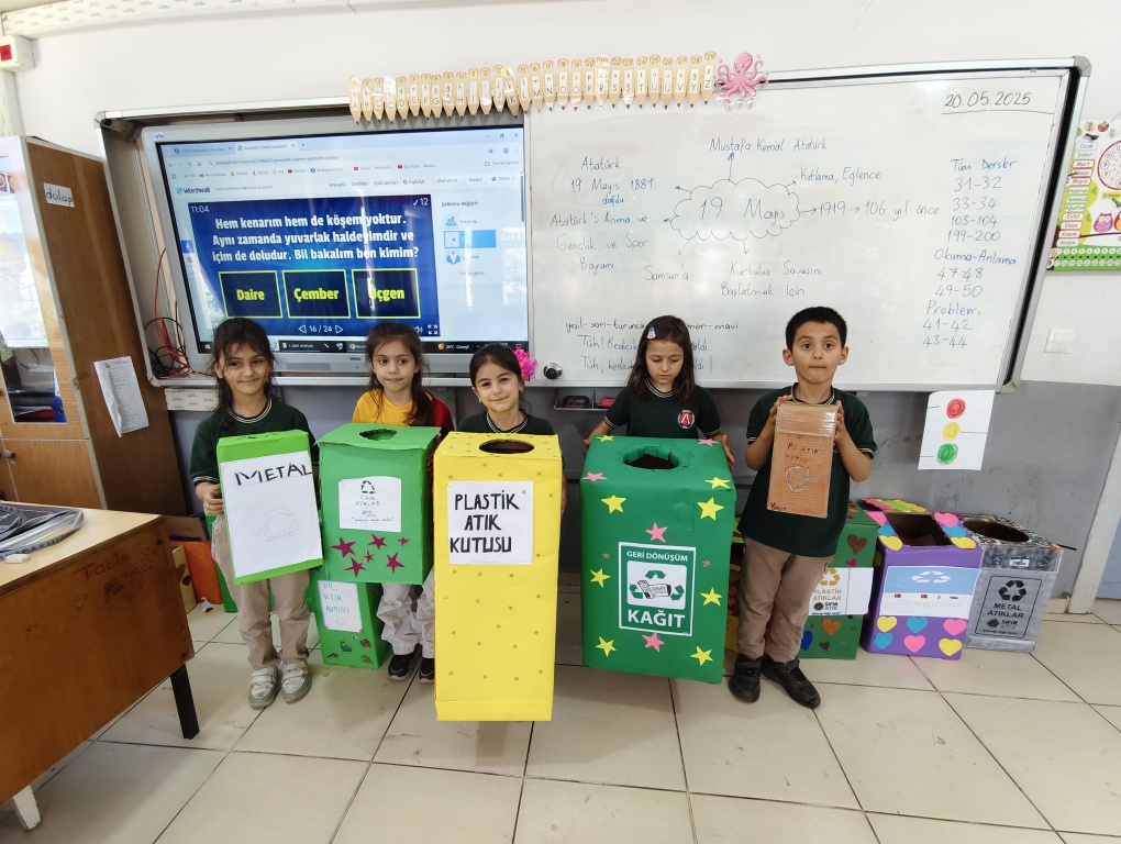 Okulumuz 1 / C sınıfı okulumuzda Yaşam Becerileri Projesi kapsamında Geri dönüşüm Bilinci kazandırmak için kendi tasarladıkları Geri Dönüşüm Kutularını arkadaşlarına sundular. Yaptıkları ürünleri diğer sınıflara da koyarak Geri Dönüşüm ile ilgili farkındalık yarattılar. Öğretmenimiz Arzu Çandıroğlu'na ve öğrencilerine teşekkür ederiz.